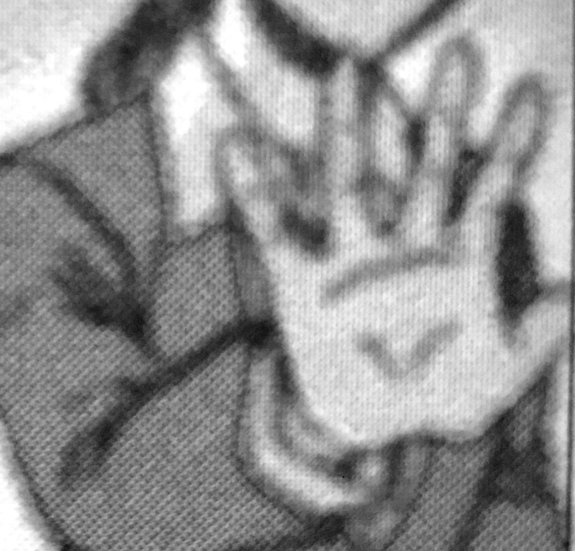 二人の手のひらの掌紋の絵がほぼ一致しています。