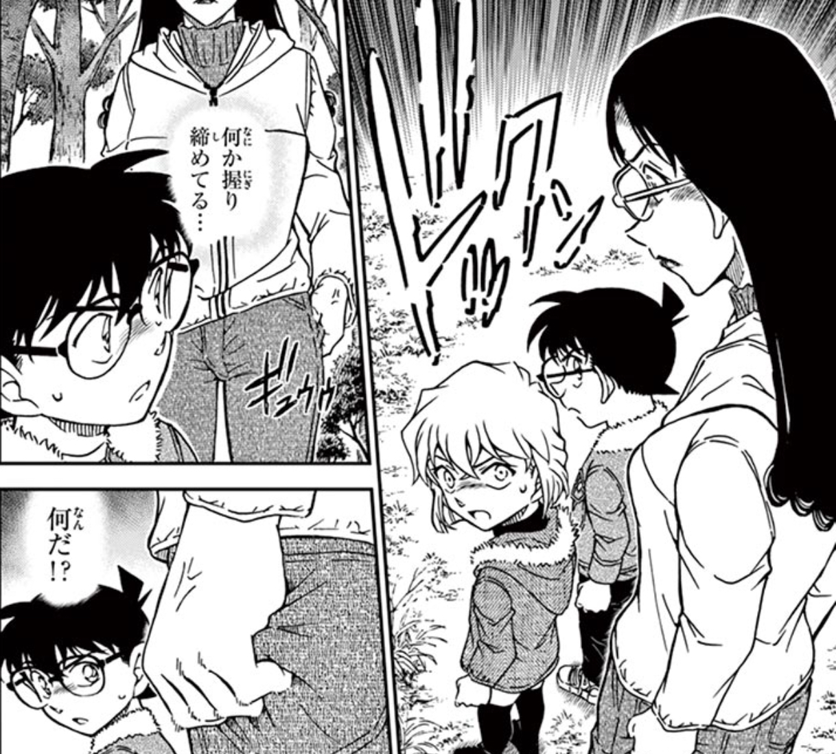 上で考察した通り、彼女はコナンの推理力を確かめているようなそぶりを見せています。