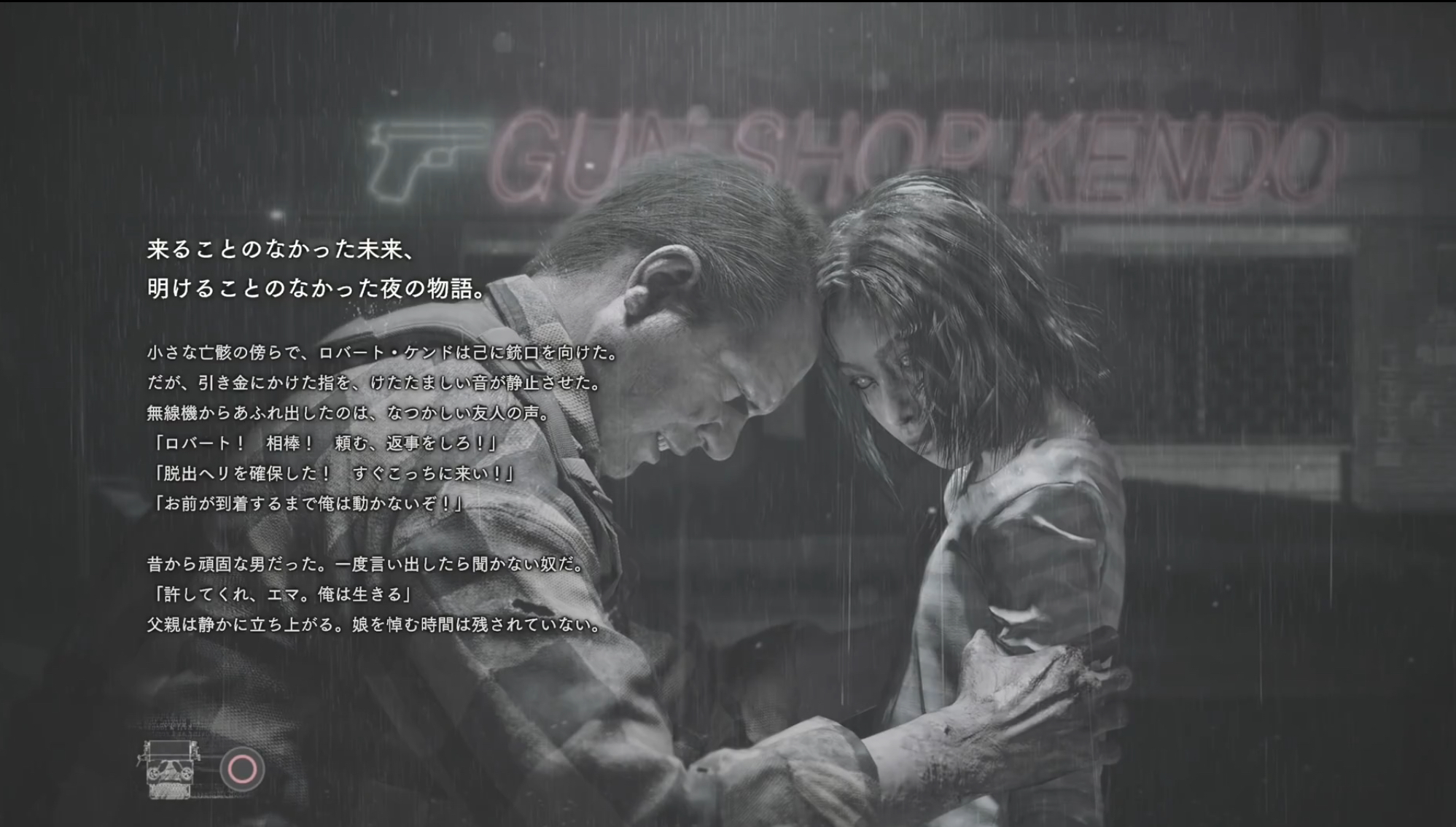 ガンショップ「ケンド銃砲店」の店主として旧2に登場してゾンビによって命を落とした彼でしたが、今作では一人娘がゾンビ化ギリギリの状態になり、それでも娘を思う父としての彼が描かれました。