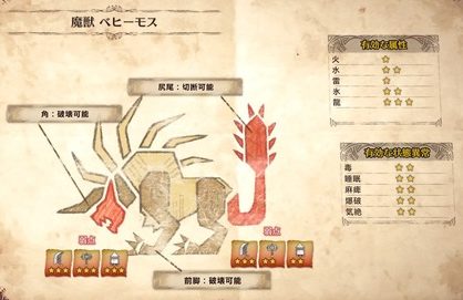 3ベヒーモスの弱点と肉質。おすすめ装備について。
