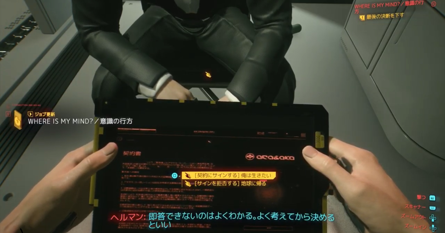 ラスボスを倒した後、宇宙船でヘルマンの契約書へのサインをするかしないか。