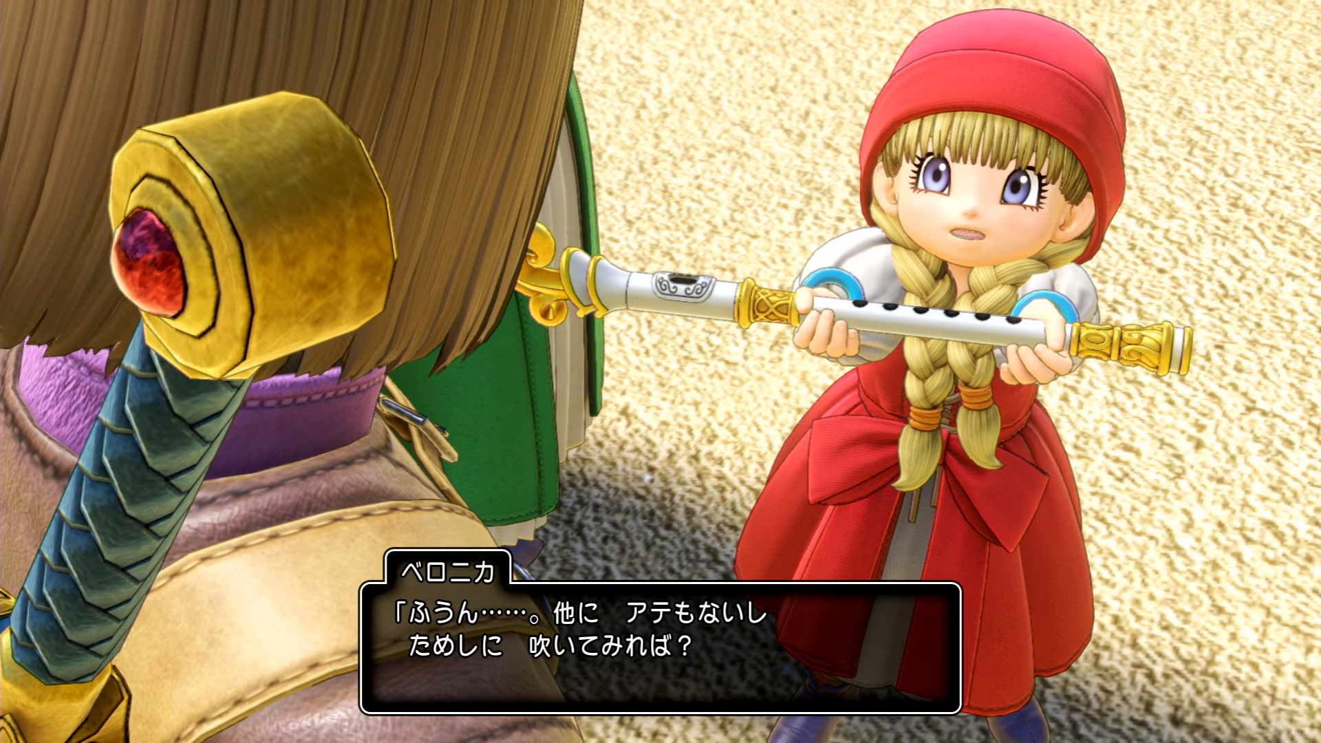 「伝説の笛って言われても、これしかないし・・・試しに吹いてみれば?」と言われ、吹いてみます。←ここまで冒険してきたら、絶対にどうなるかわかってる人