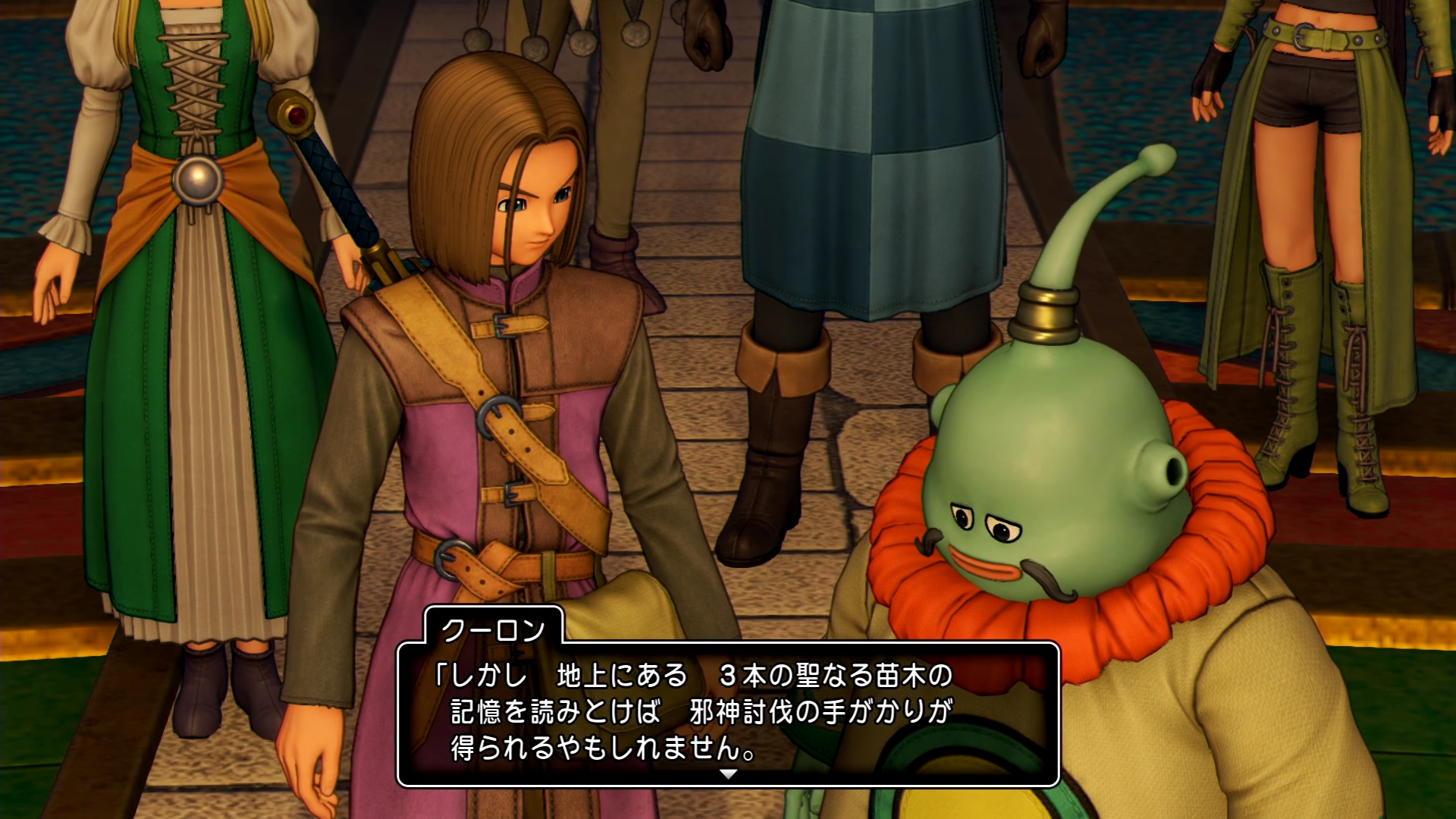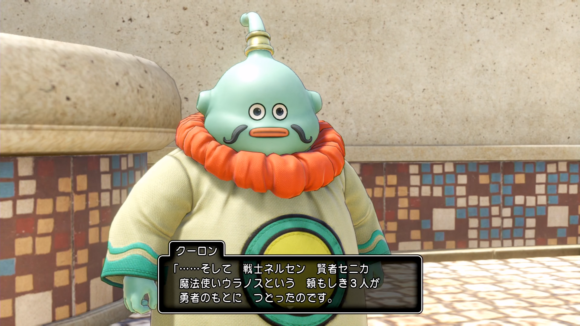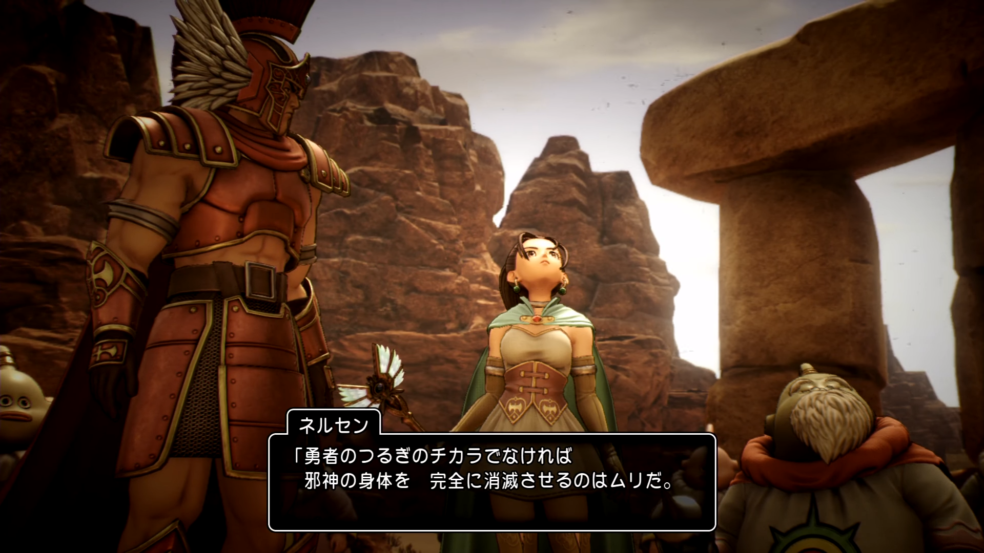 「かつて邪神と戦った、勇者ローシュ、そして戦士ネルセン、賢者セニカ、魔法使いウラノスという頼もしき3人が勇者のもとに集ったのです。」