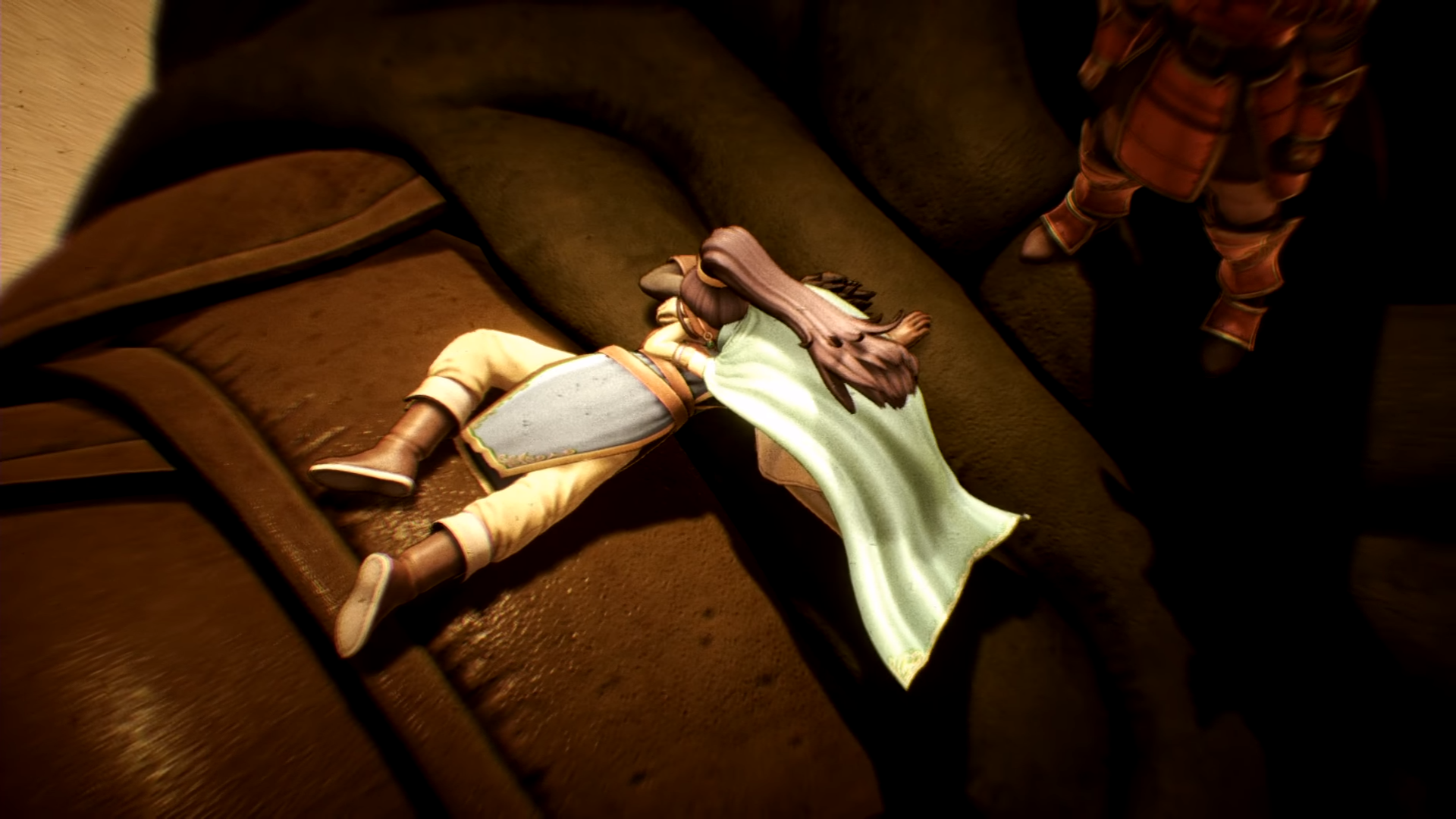 彼らがどうして一緒にいなかったのかは不明ですが、遅れてやってきた彼らはもう何も言葉を発しない勇者の姿にがっくりとひざを落とします。