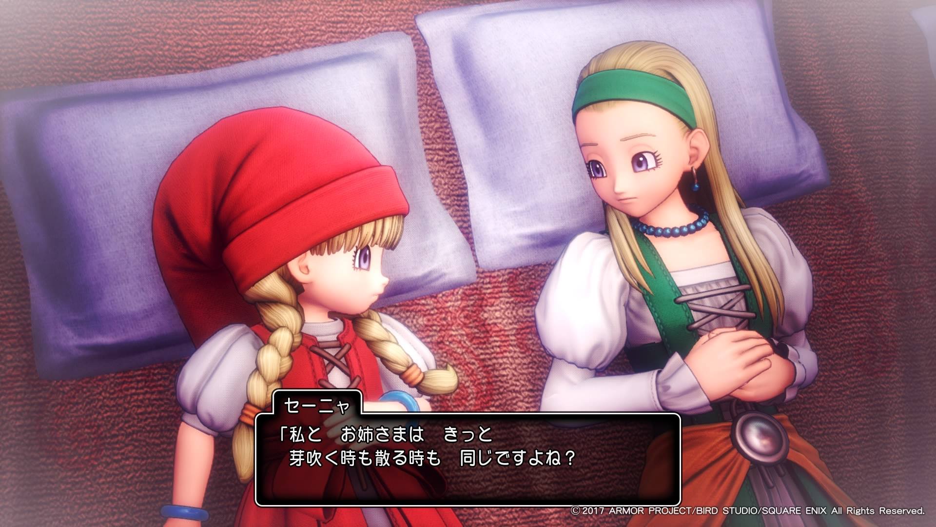 セーニャは子供のときからちょっとぼんやりしたところがあり、いつもベロニカの後をついて歩いていたようです。