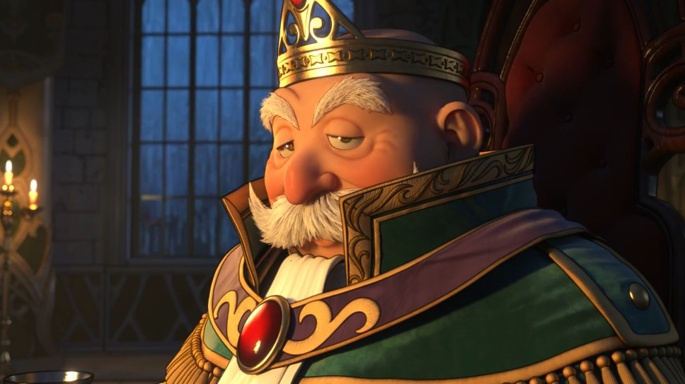 よくよく見ると、デルカダール王が身に着けている服装も紫で主人公と一致。