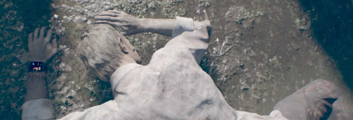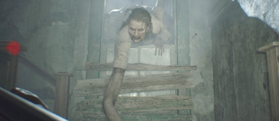 主人公、イーサン。プレイヤーは主人公目線なので、実際にその姿が確認できるのは、倒れたこの場面だけという仕様でした。