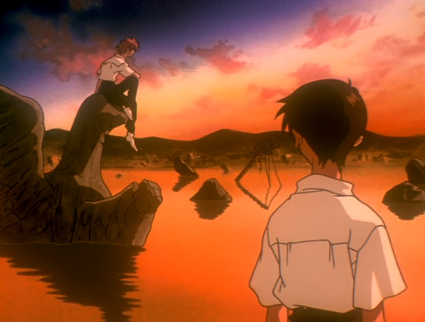 使徒と戦うことへの恐れと葛藤を見せるシンジに、ミサトはジオフロント深部の第2の使徒「リリス」を見せ、リリスと使徒との接触による「サードインパクト」を防ぐために戦っていることを告げます。