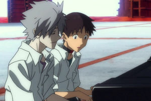 「はじめまして、お父さん」と碇ゲンドウにひそかに挨拶をする渚カヲル君。