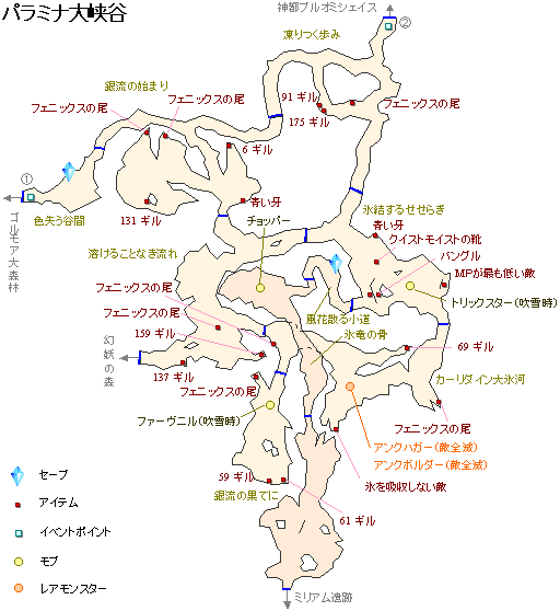 | 10 | トレジャーに化けたサンダーバグが居ますので、気をつけてください。 | 129ギル、31ギル、金のアミュレット |