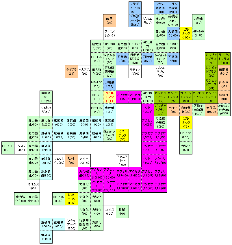 | ブラッドソード装備 | 50 | ブラッドソード | ※要召喚獣ライセンス (ザルエラ) |