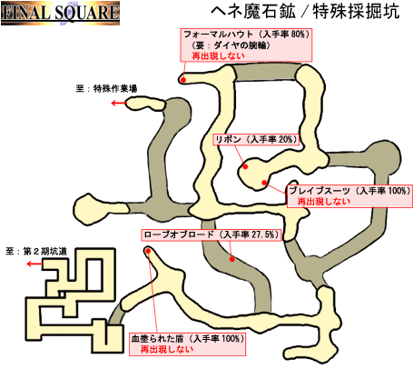 ・ モブ『ディアボロス』から盗む(3% or 6%)。ルース/第11鉱区採掘場に出現。