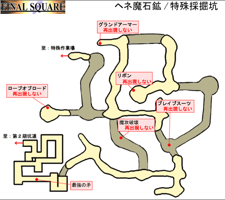 ・ヘネ魔石鉱の分別作業所の扉が開くので東に進む