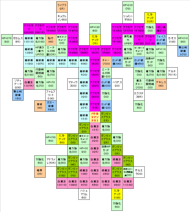 | HP+ | 力強化 | 魔力強化 | 魔力UP | 消費MPカット | エーテル知識 | 行動短縮 |
