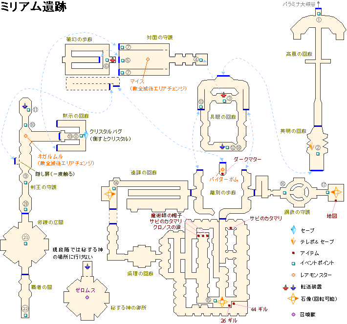 ミリアム遺跡(イベント)推奨レベル30 詳細は攻略チャート3を参照ください。 |