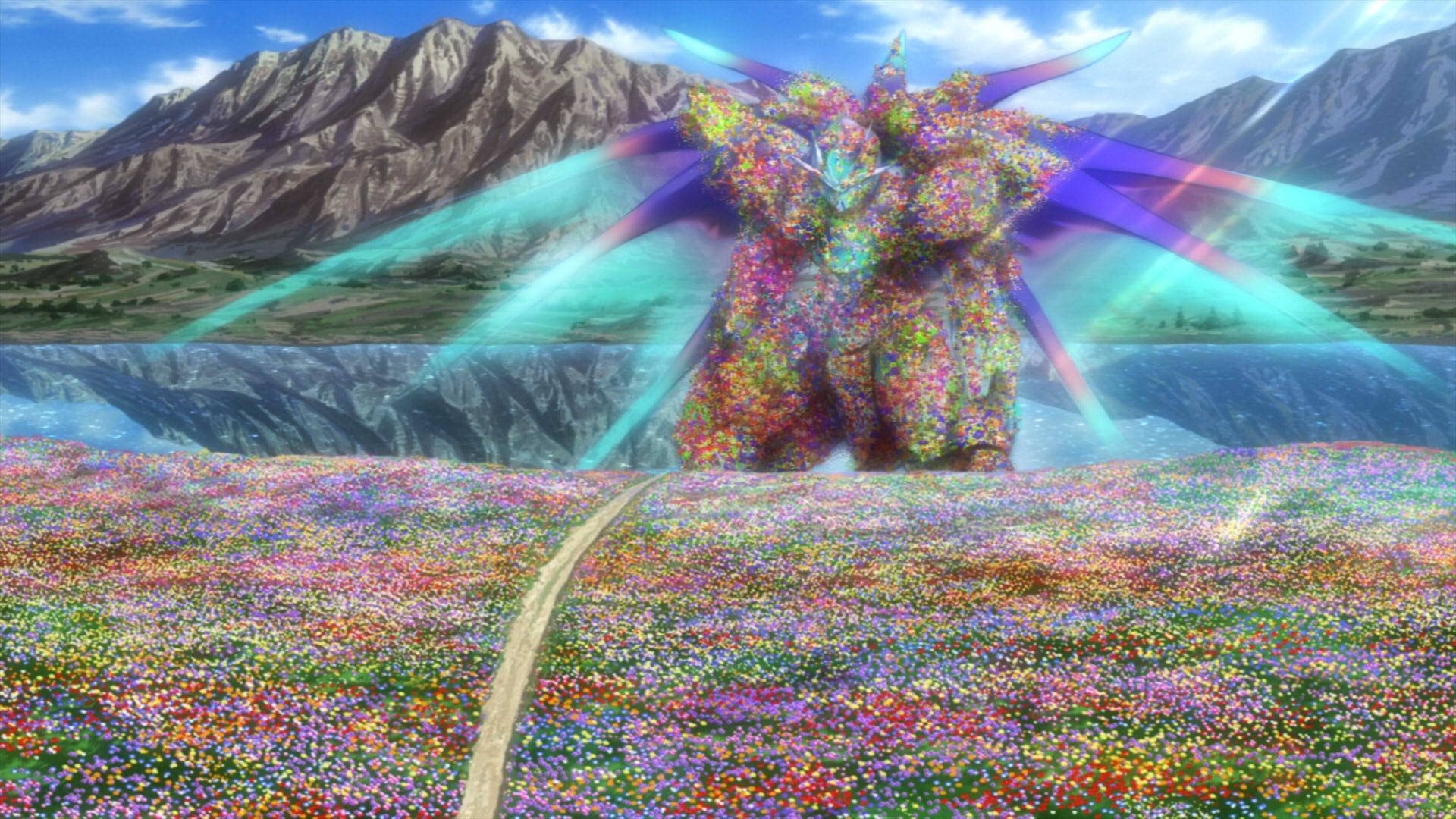 世界は平和になり、役目を終えたガンダムは花に包まれて・・・。
