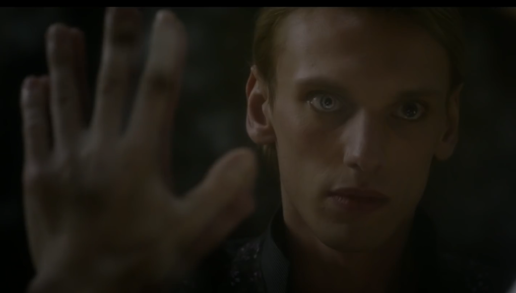 不敵に笑い、「お前は無知だ」と、ヴォルデモートを挑発するグリンデルバルド。