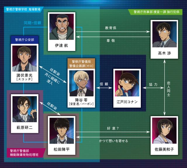 警察学校編の仲間達は以下に詳しく紹介していますが、ここでもう一度復習として簡単に映画初登場の人物と重要人物をご紹介します。