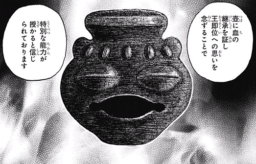 継承戦では、特別な壺が使われて、各王子に守護霊獣という能力が与えられています。