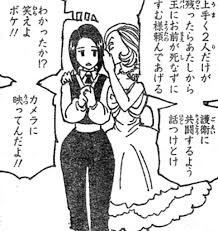 最初はカチョウは自分を犠牲にして、フウゲツを守るために暴言を吐きまくったりしていましたが、センリツが味方であることと念を知り、現在は協力してフウゲツと一緒に船から脱出することを目的にしています。