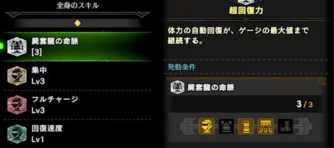 この場合、歴戦イビルジョーの捕食に対抗&回復しながら戦うことができるため、確実に狩りたい場合はこの装備も結構おすすめです。