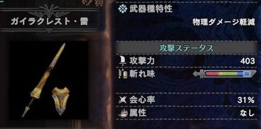 さらに同じ武器種であっても、「ガイラブレイズ・氷」のように武器名によって属性が違ったり、とにかく種類がたくさんある様子。