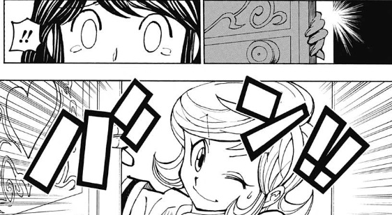 とっさの機転で、フウゲツの能力を発動させ、扉の中にフウゲツを押し込むカチョウ。