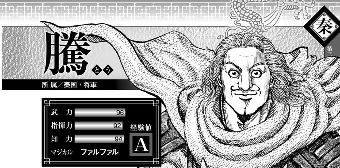 そのため、途中で死ぬキャラクターだったが、存在しないので、以降自由に活躍することになる。キングダムの裏方として重要な立ち位置。