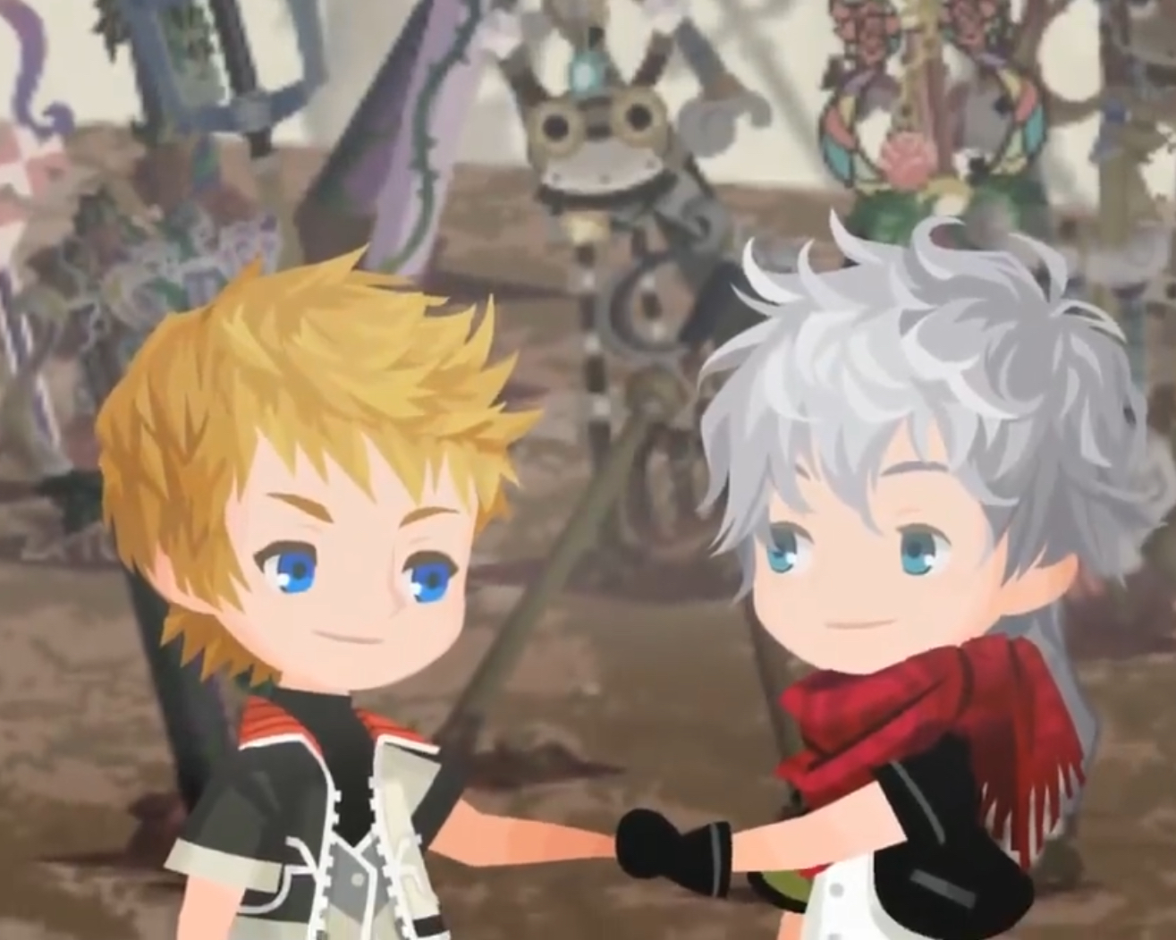 戦闘は苛烈を極め、キングダムハーツ1~3に出てきた「キーブレード墓場」と呼ばれる戦場になります。