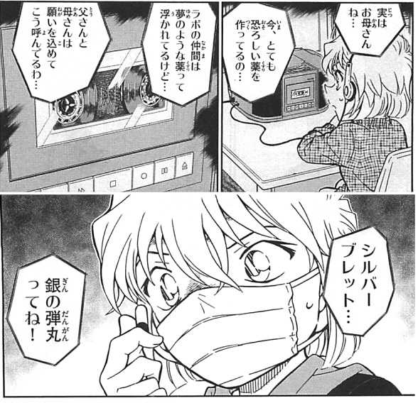 ただ、宮野夫妻が組織にとっては失敗作であったAPTX4869を「シルバーブレット」と呼んだ通り、この薬によってコナンが登場し、彼がベルモットに黒の組織を壊す「シルバーブレット」と呼ばれるようになったことが組織にとっての皮肉であり、最大のミス(意図したものではないにせよ)。
