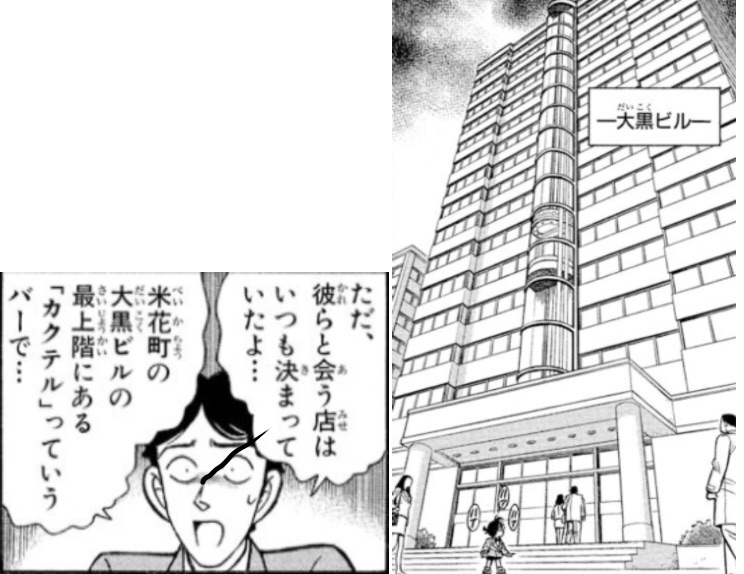 黒の組織のメンバーの名前がお酒であることからしても、最上階のバーが「カクテル」である=黒の組織のボスの本拠地である、と考えるのはありだと思っています。