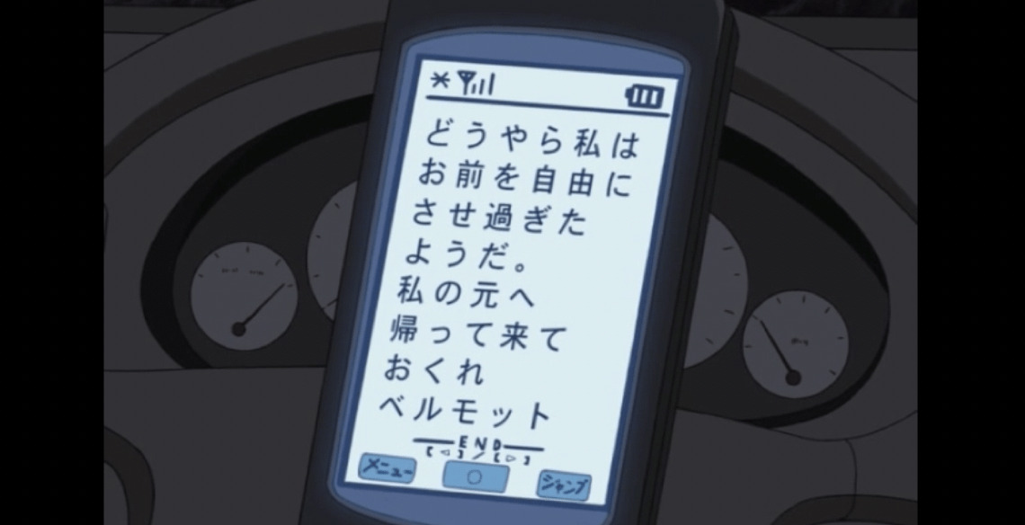 「どうやら私はお前を自由にさせ過ぎたようだ。私の元へ帰ってきておくれ。ベルモット」