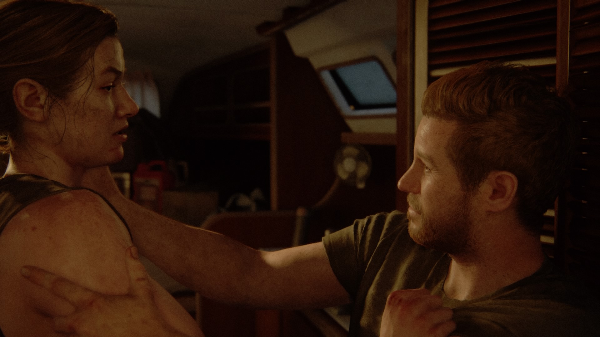 しかし、エリーはつながれていたアビーとレブを助け、二人が船に乗った段階で言います。