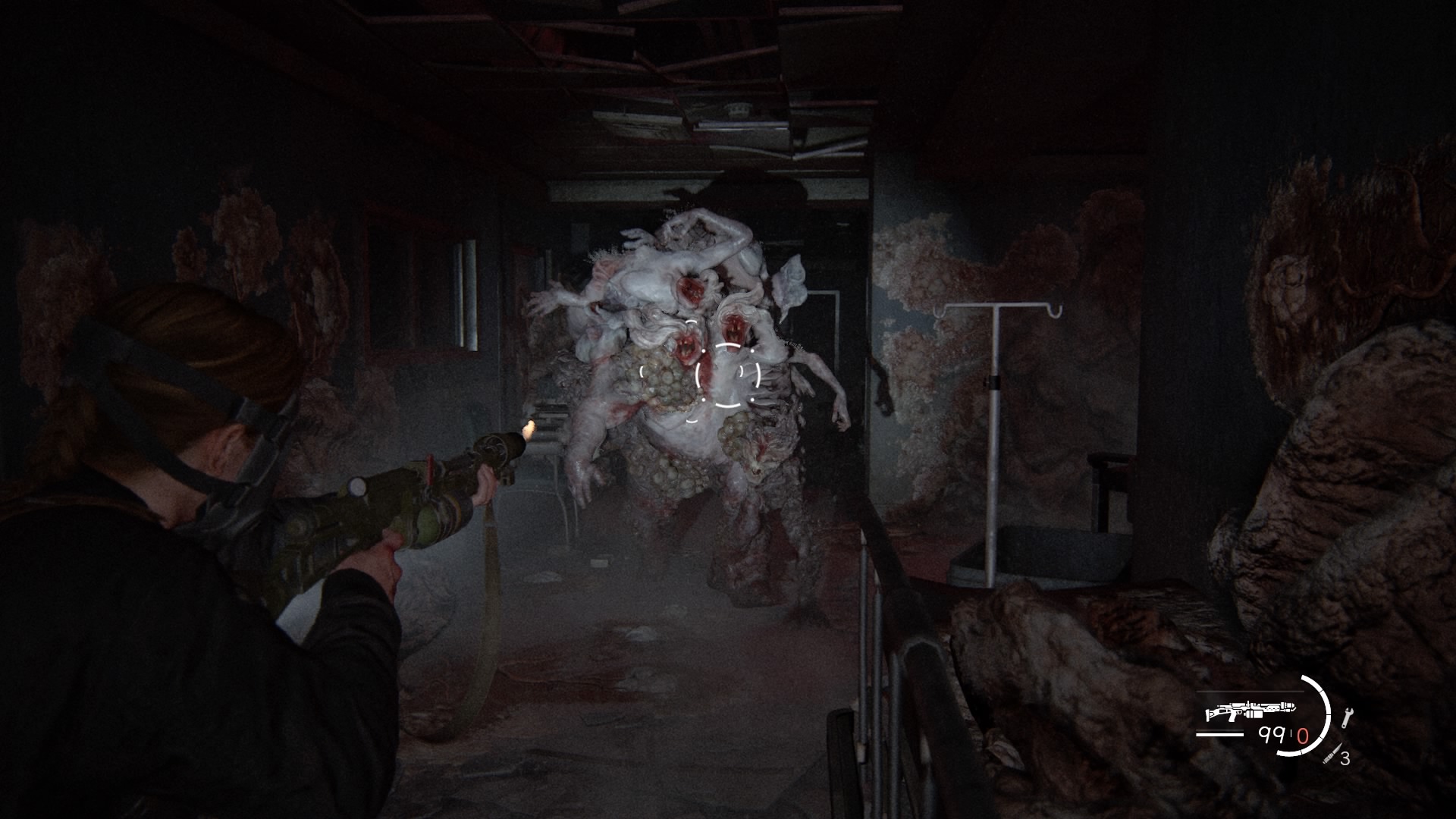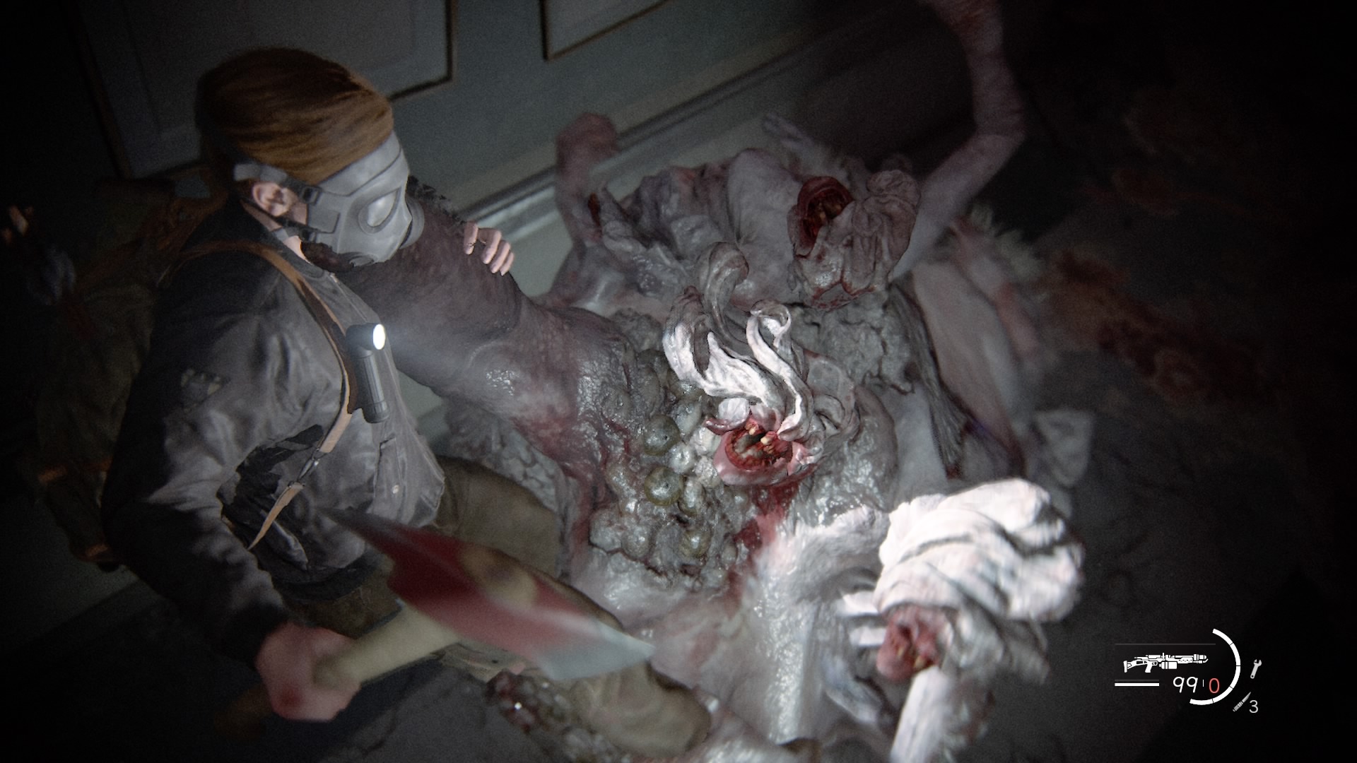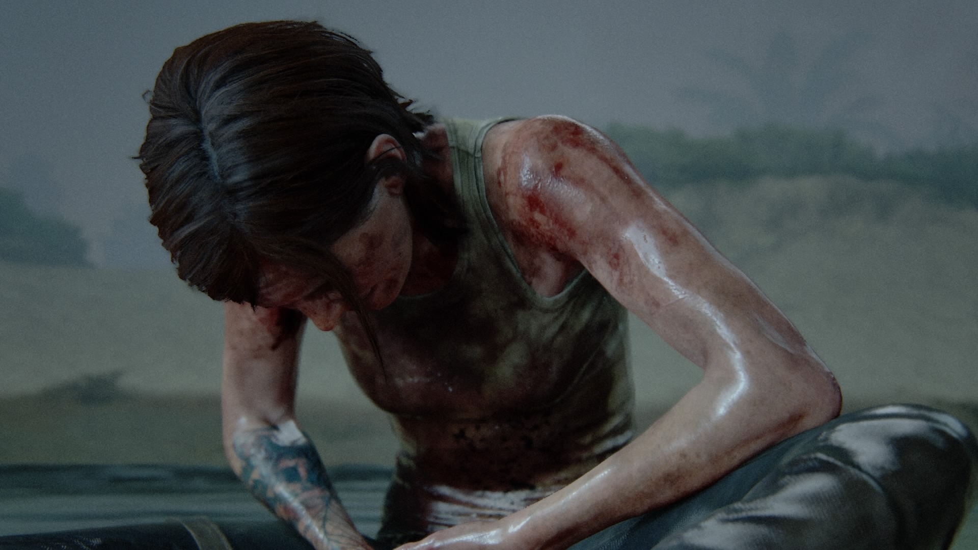 前作でもラストに意味深に残された、エリーの腕の傷跡(感染者に噛まれた後)でしたが、今作ではアビーとの闘いで失った指が描かれます。