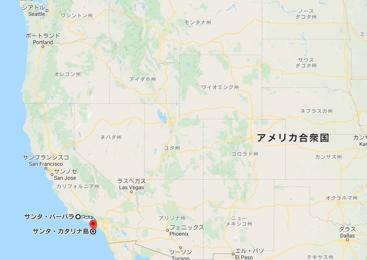 シアトルからサンタバーバラ、そしてカタリーナ島の位置です。