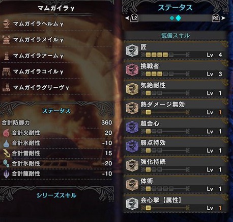 | マムガイラコイルγ | 弱点特効+1 超会心+1 | ③– |