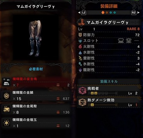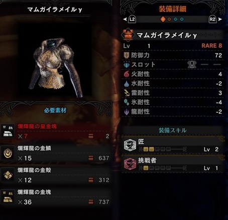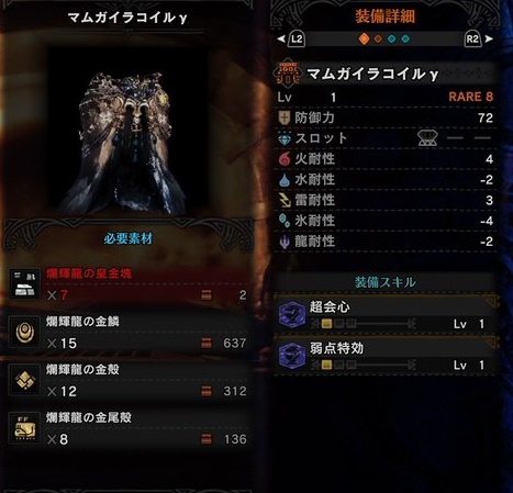 1歴戦王マムタロトから作れるマムガイラγ装備