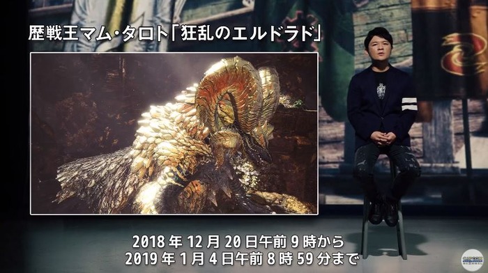 マム・タロトが“歴戦王”になって登場!爛輝龍が更に力をつけ、白金に輝く姿を現す!新クエスト「狂乱のエルドラド」を12月20日(木)から期間限定で開催決定!新たに追加された新鑑定武器や防具「マムガイラγシリーズ」を手に入れよう