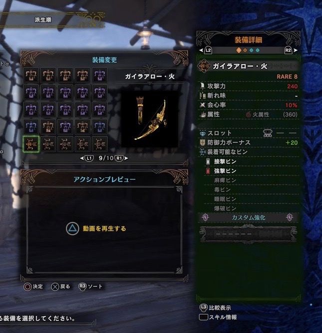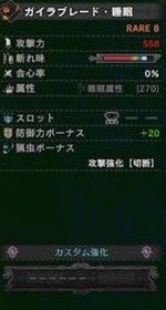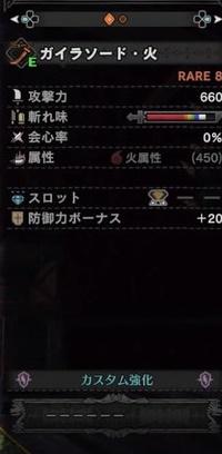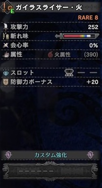 攻撃力240 会心10 火属性(360)スロット3