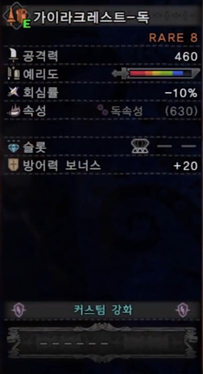 攻撃力:693 会心率:- 防御力:20 属性: ( 龍150 ) 龍封力:【大】 スロ3