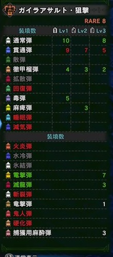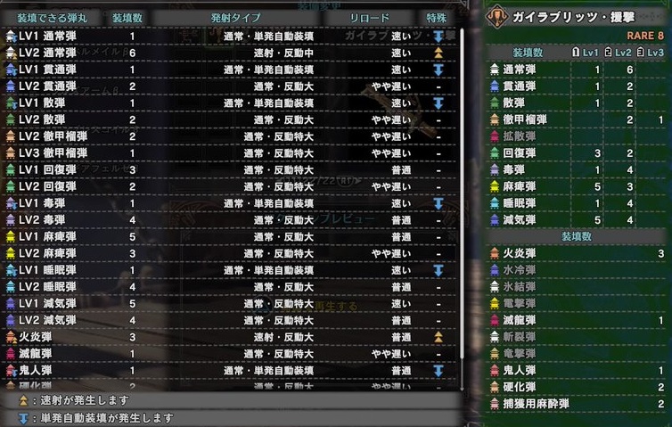 通常弾レベル2が速射で6発装填できる上、火炎弾の速射付で、状態異常弾が優秀。