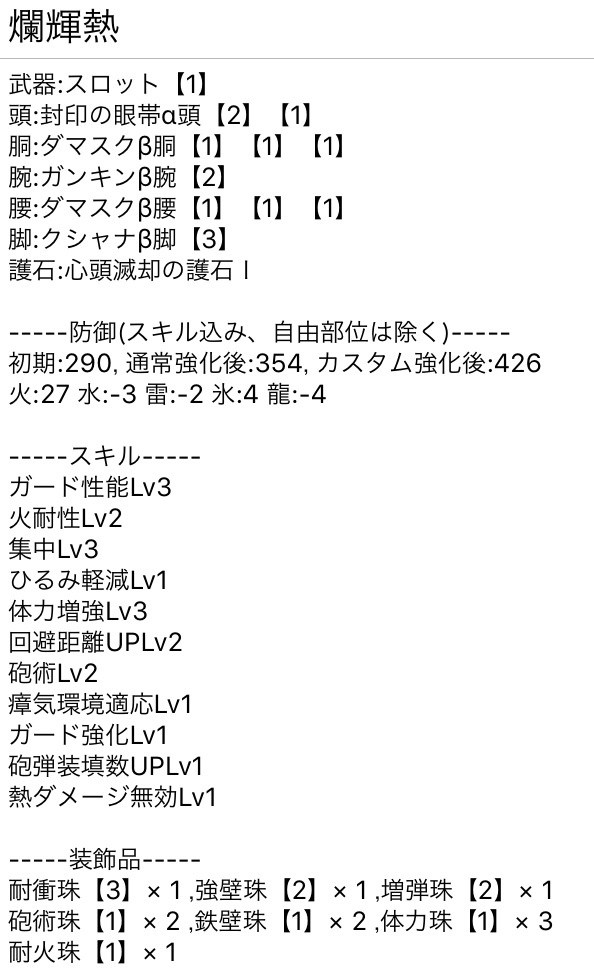あるいは、以前ご紹介したゾンビ回復装備×ガード5に火耐性をつけるのも〇。