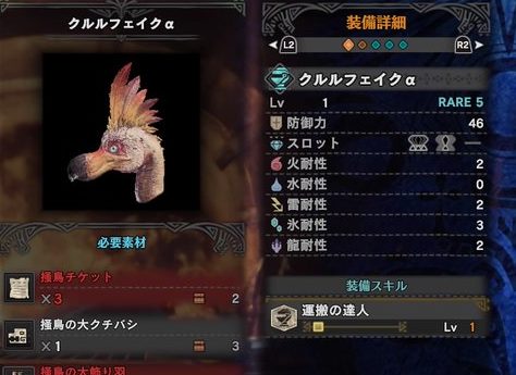 スキル:運搬の達人+1 運搬時の移動速度上昇、着地時リアクションの軽減