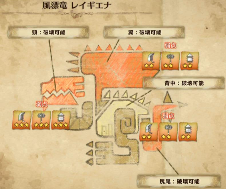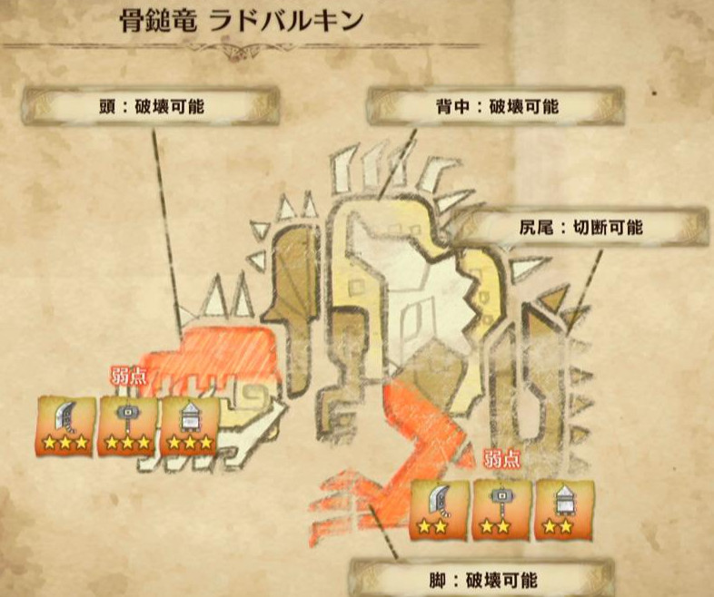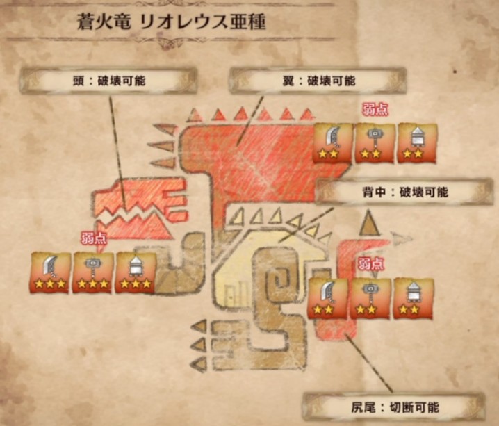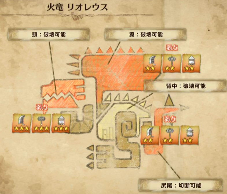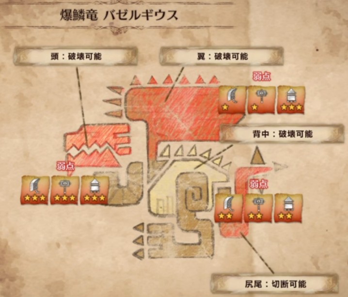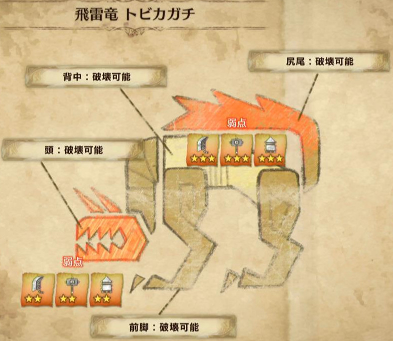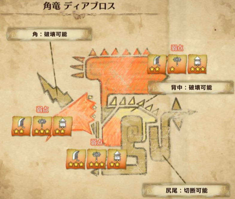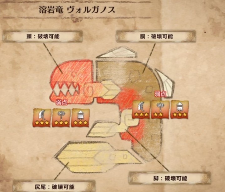 以下、モンスターの弱点属性と弱点部位をメインに解説します♪