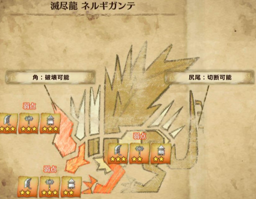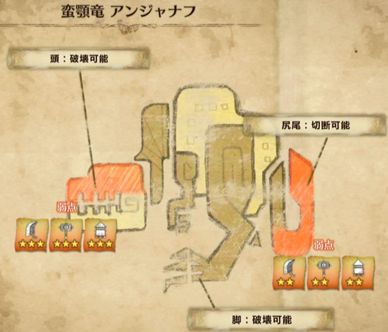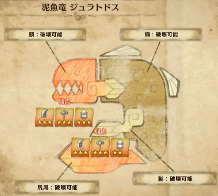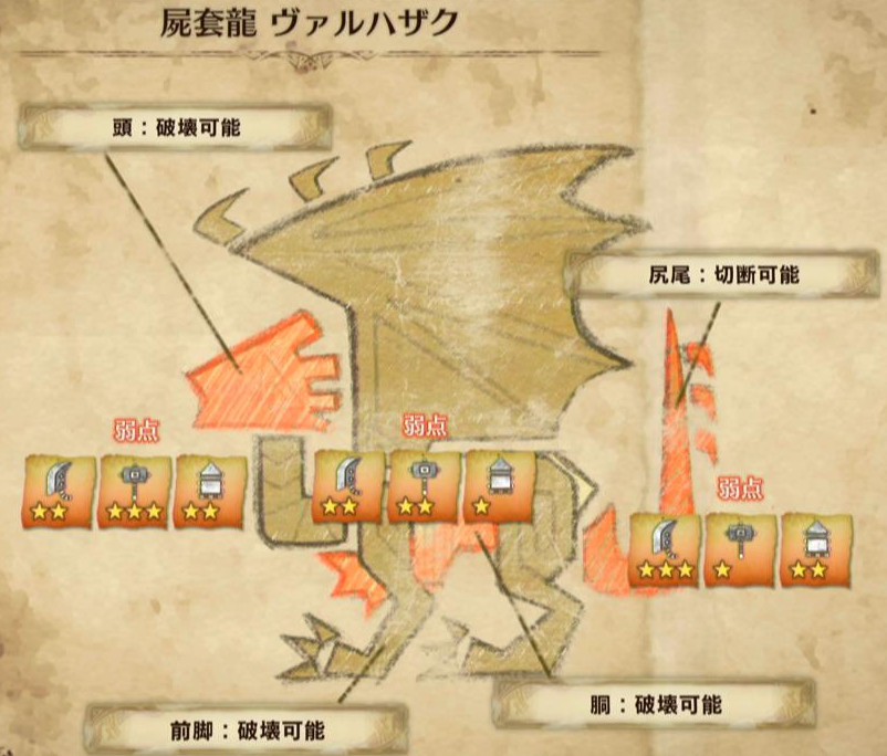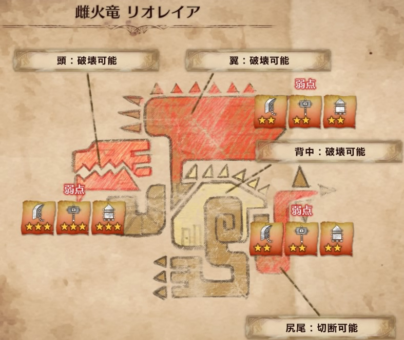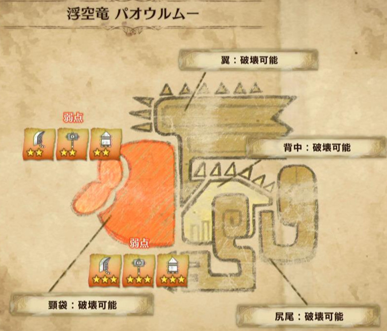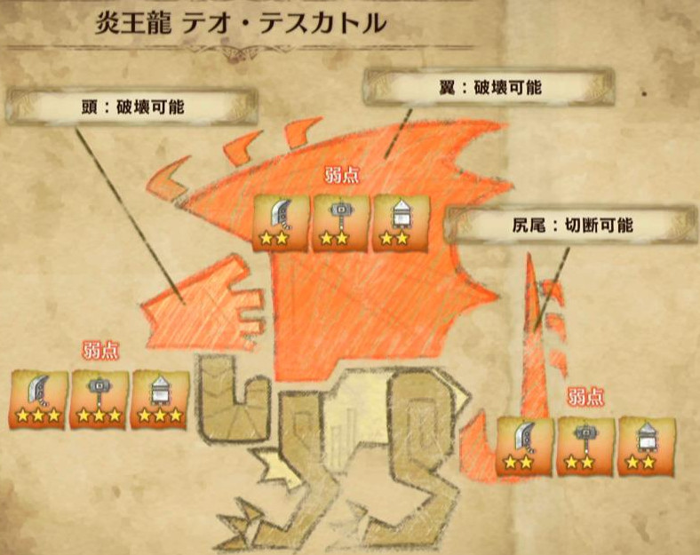 以下、モンスターの弱点属性と弱点部位をメインに解説します♪