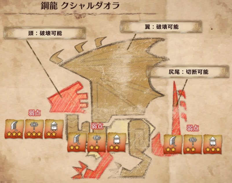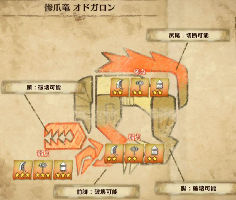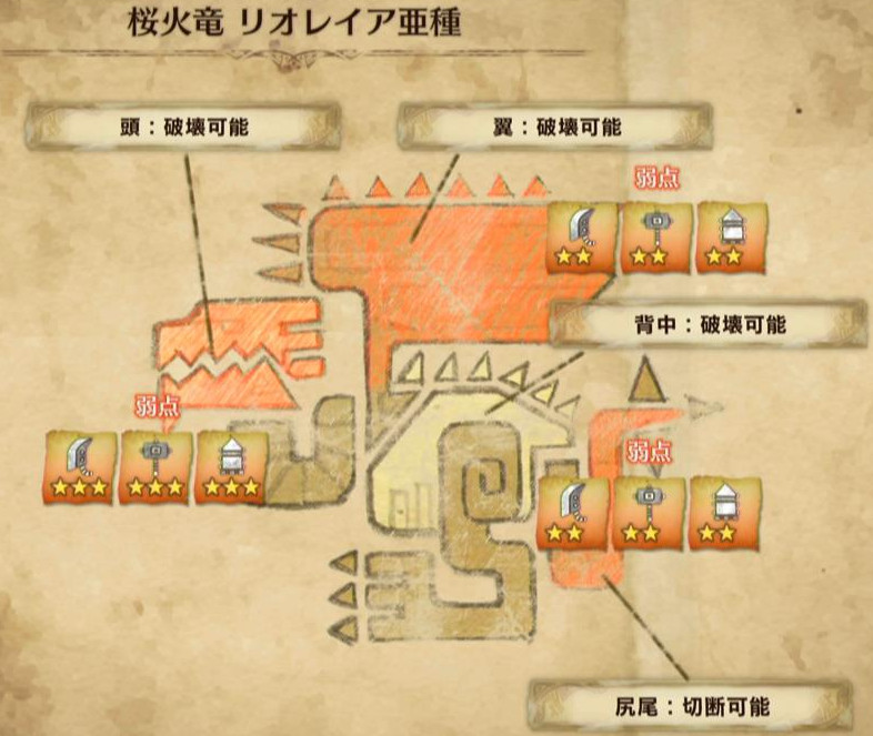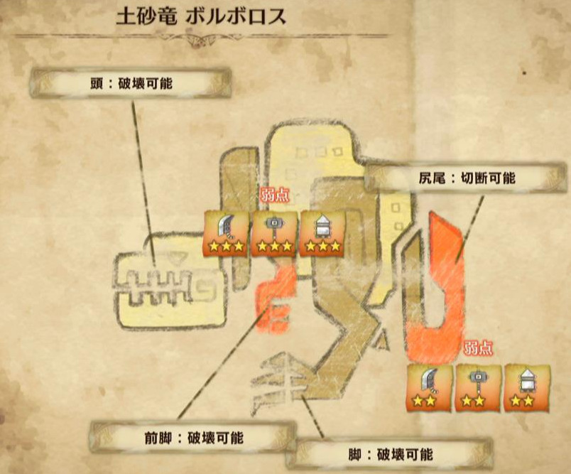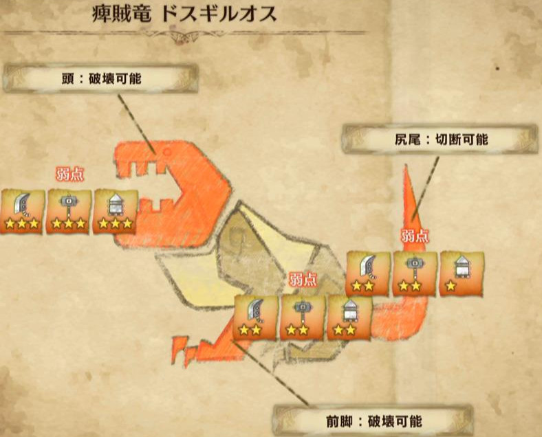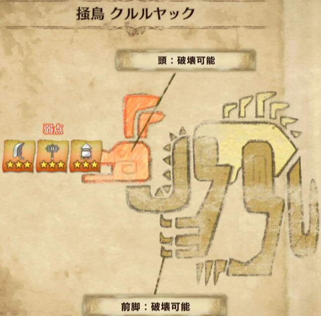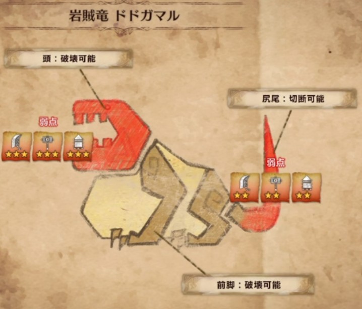 また、実際に立ち回りを考える上で重要なのが、「弱点部位」と「有効武器」です!