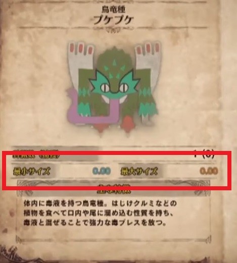 このように、モンスターの最大サイズと最小サイズを見ることも可能です。