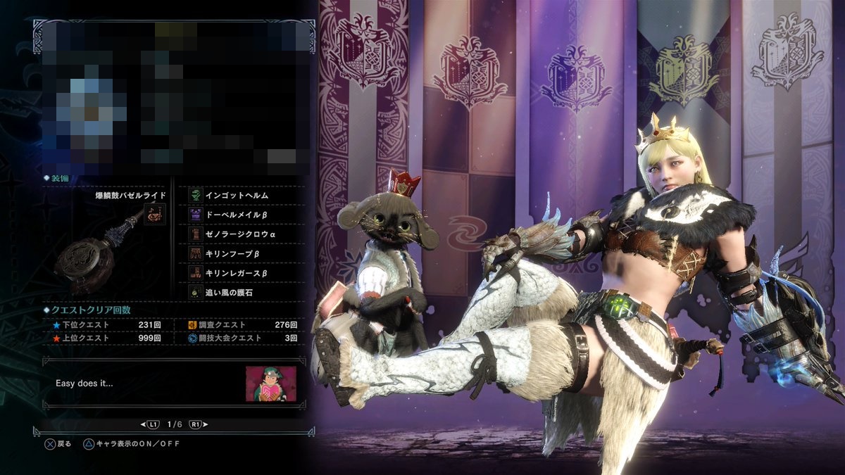今作の防具の中では最も優雅に狩りができる防具のような気がしています!