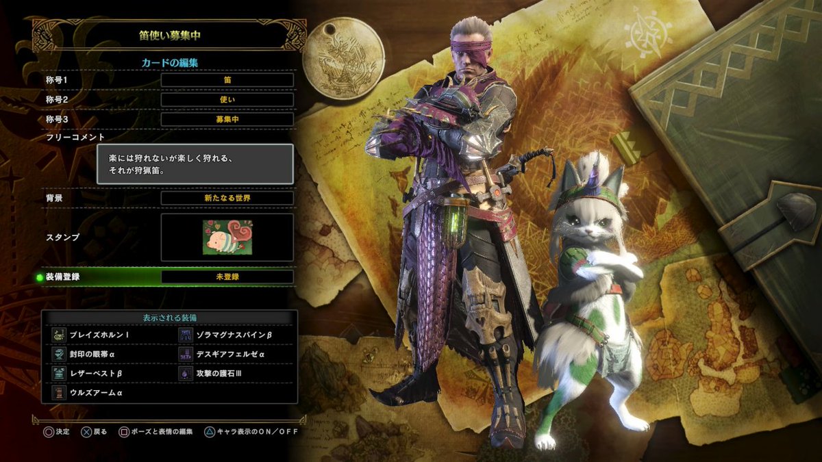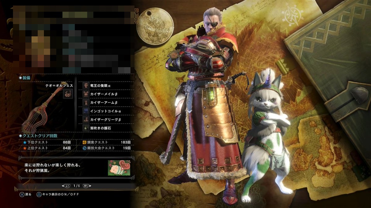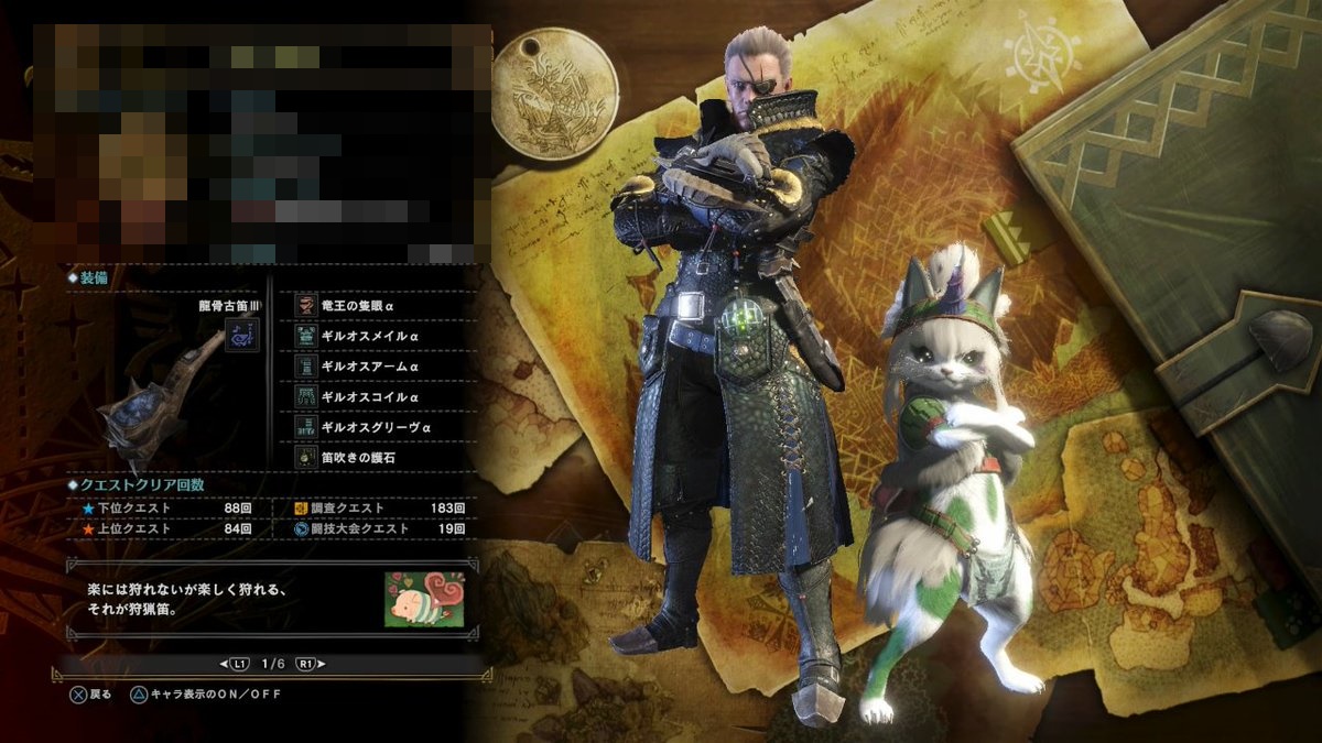 かなり歴戦のハンターっぽくてかっこいいです。どの見た目装備もいいですよね♪