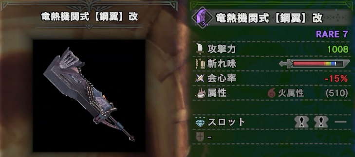 チート武器とも言われ、未だに最強の大剣である「竜熱機関式【鋼翼】改」が入手できます。